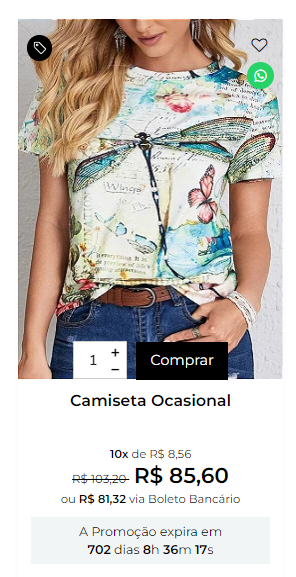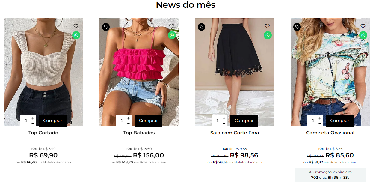 Com possibilidade de habilitar e desabilitar vários recursos diretamente no tema, como: selo do produto, timer e frase de promoção, botão do WhatsApp fixo, se deseja o menu em degradê, a imagem do produto em 1000x1000px ou 1000x1500px e muito mais.